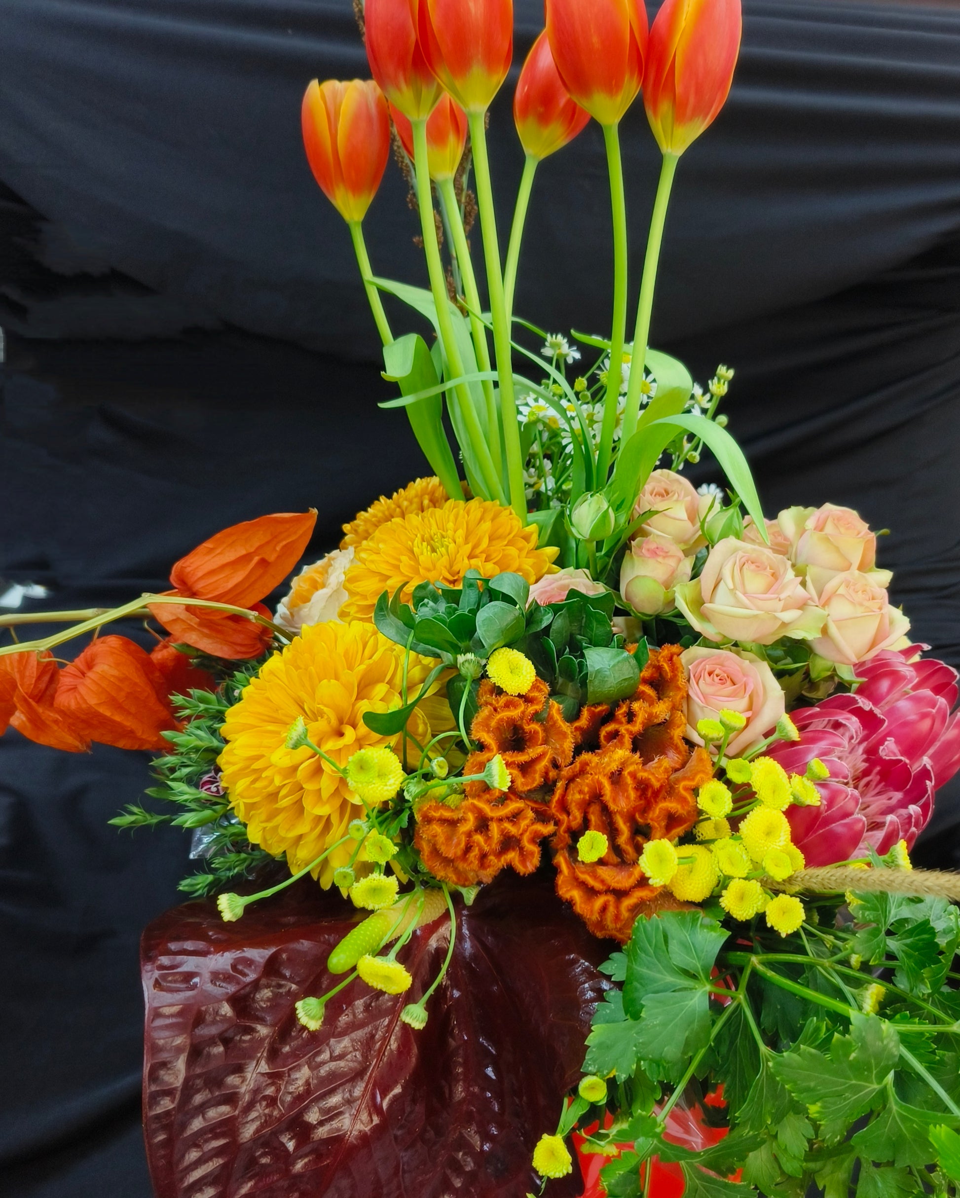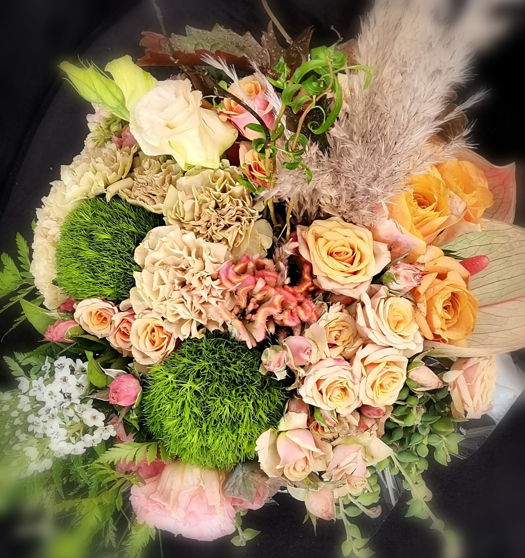 The Caar'i Flora Autumn Parisian Posies are a whimsical and romantic arrangement that captures the essence of autumn in the city of love. With a blend of delicate blooms in warm hues like burgundy, blush pink, and deep purple, these posies bring a touch of Parisian elegance to any setting.