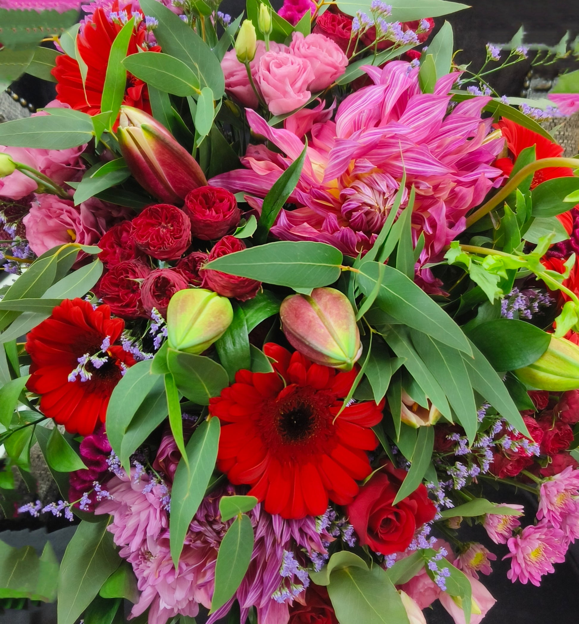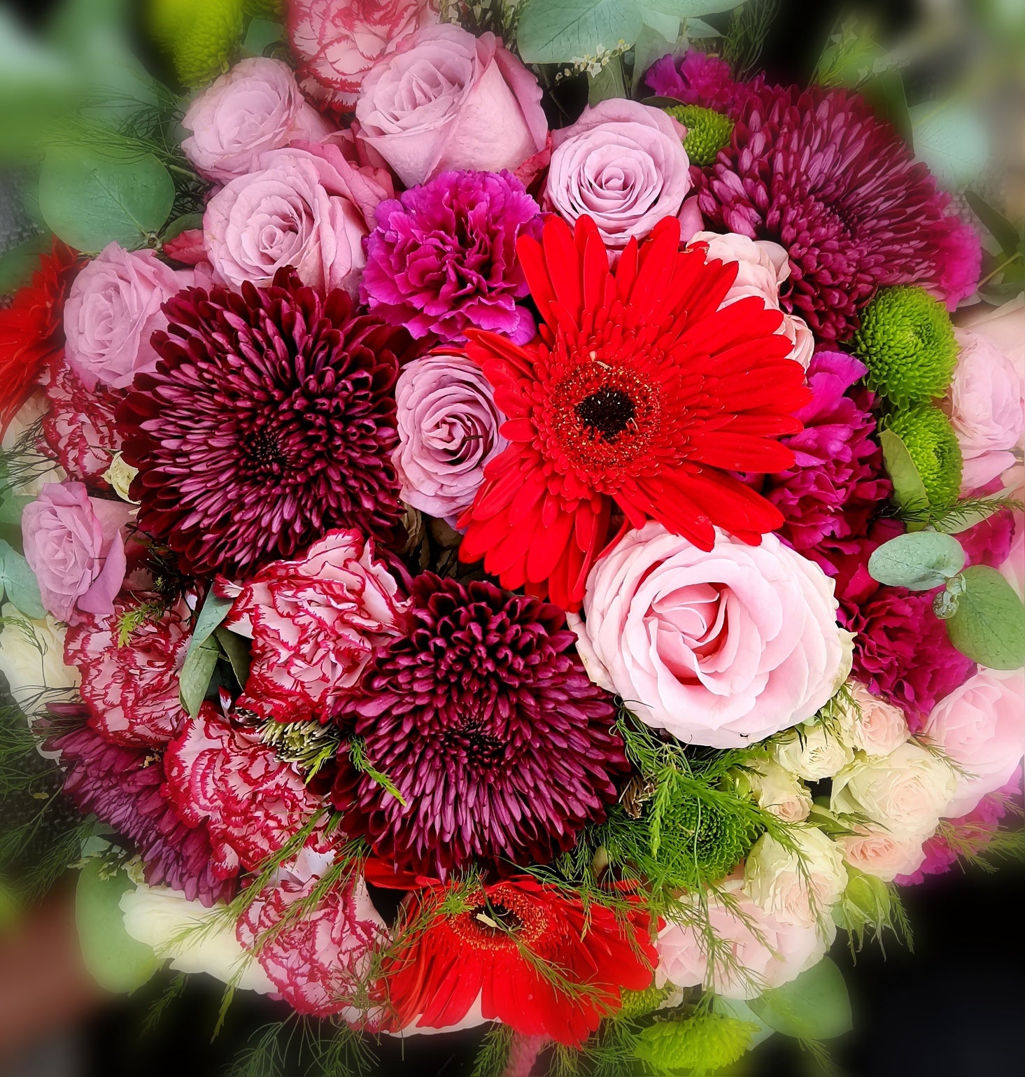 The Caar'i Flora Berry Coloured Hostess Bunch is a stunning bouquet designed to express gratitude and admiration. Bursting with an assortment of blooms in deep purples, rich reds, and vibrant pinks, this arrangement captures the allure and beauty of berries, making it the perfect gift to impress and honour a gracious hostess.