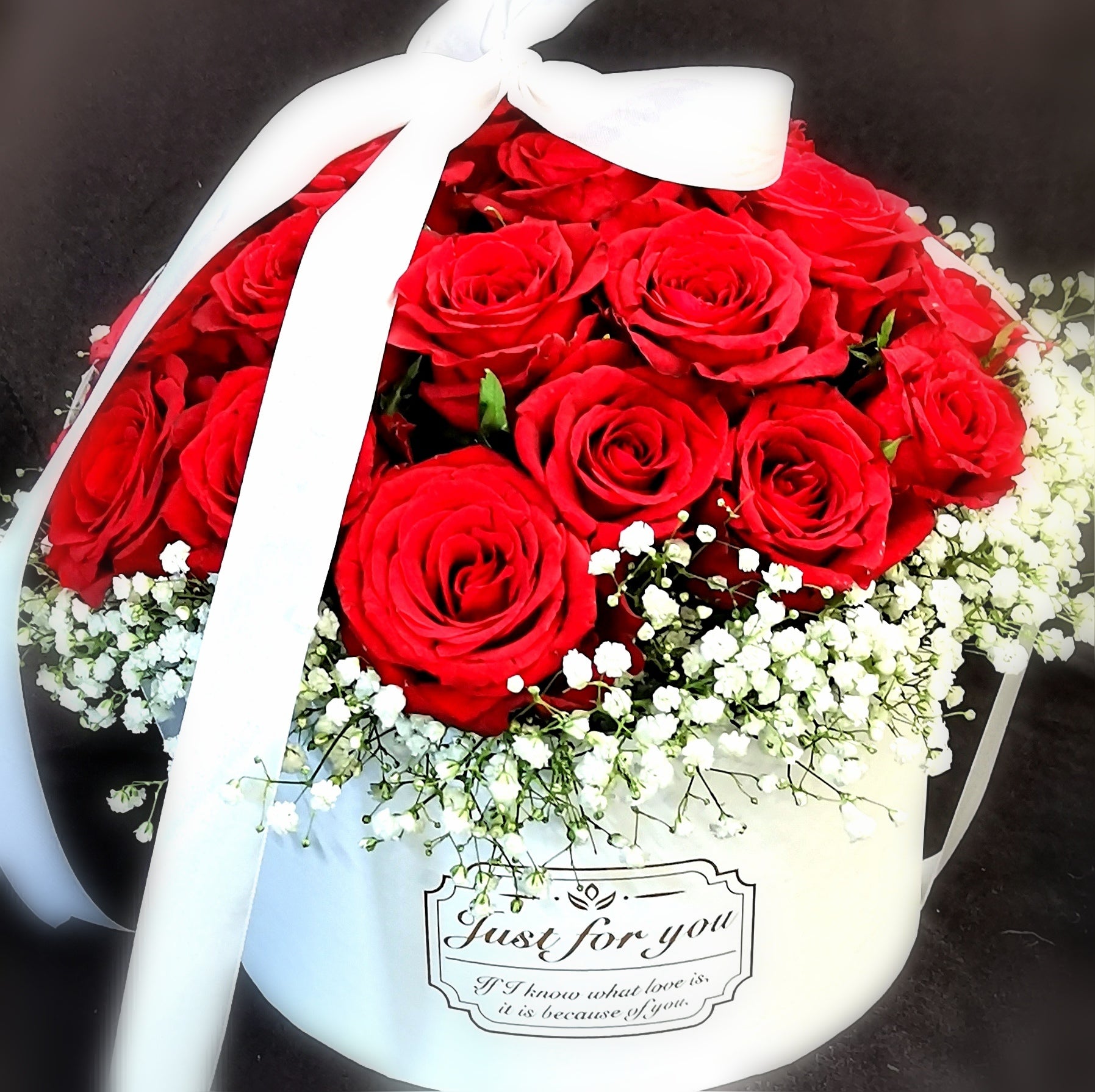 Introducing the captivating Red Hat Box from Caar'i Flora. This stunning arrangement features a collection of vibrant red blooms nestled in an elegant hat box. Symbolizing love and boldness, it's a perfect gift to make a statement and leave a lasting impression.