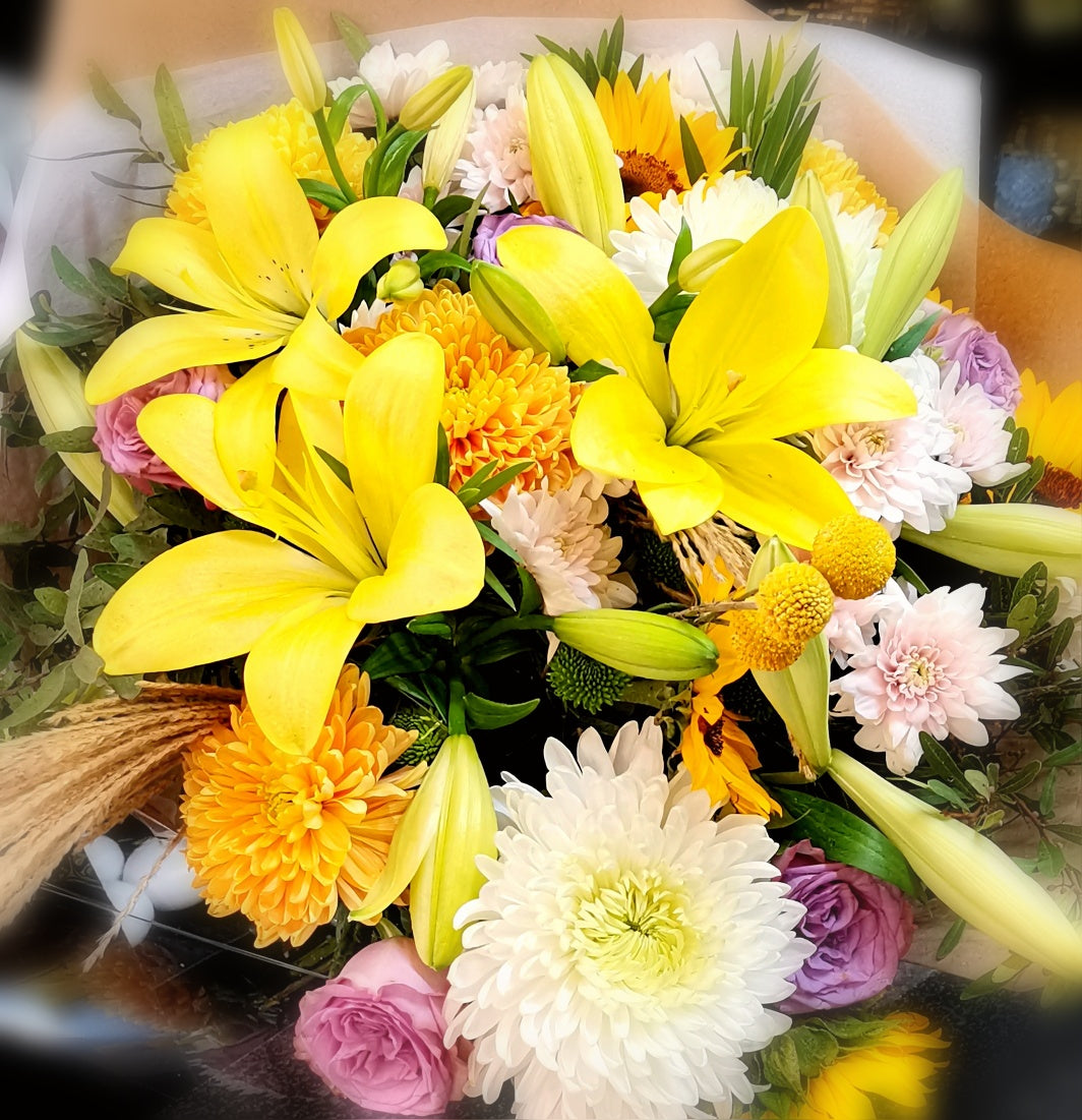 Introducing the vibrant Yellow Coloured Hostess Bunch from Caar'i Flora. This delightful arrangement features a stunning selection of sunny yellow blooms, radiating joy and positivity. It's the perfect gift to express gratitude and bring a cheerful touch to any gathering or occasion.